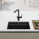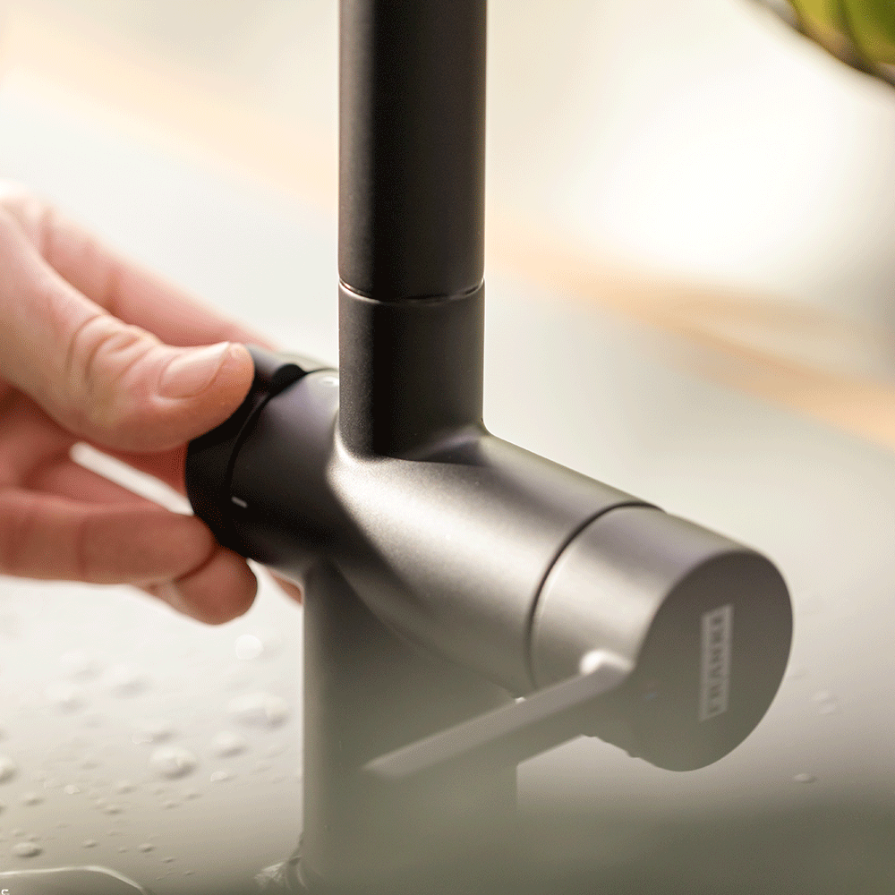 Slavina Active Twist Doccia crna mat, s inovativnom integriranom kontrolom odvoda sudopera. Uključuje poseban uređaj koji aktivira odvod omogućavajući lako, sigurno i higijenski otjecanje vode bez potrebe za stavljanjem ruku u sudoper.