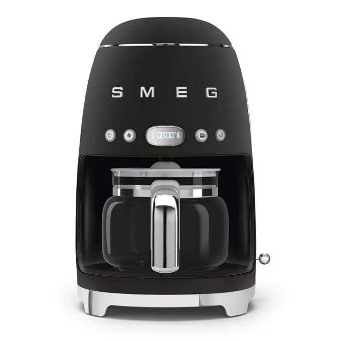 Aparat za filter kavu, kapacitet 10 šalica. S funkcijom za intenzitet arome. Programiranje automatskog uključivanja u unaprijed određeno vrijeme. Održava kavu toplom do 40 minuta nakon pripreme. 50's Style