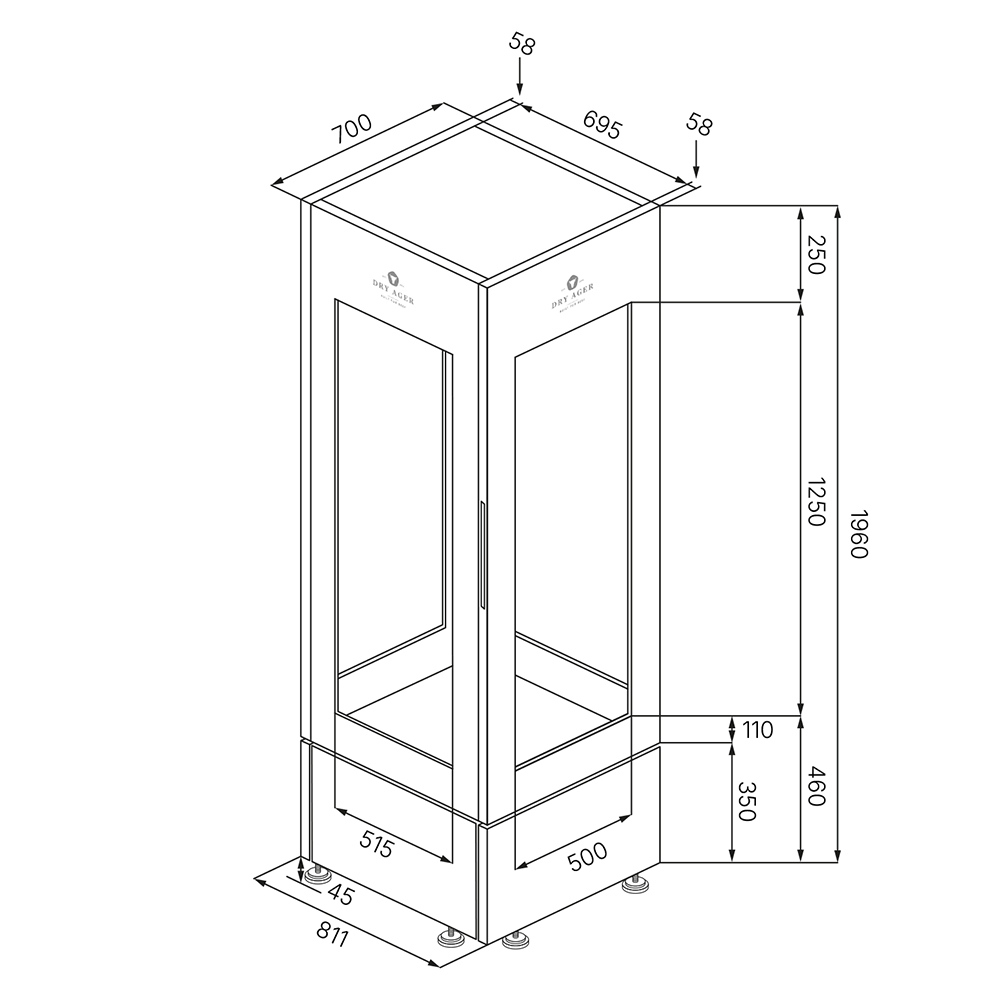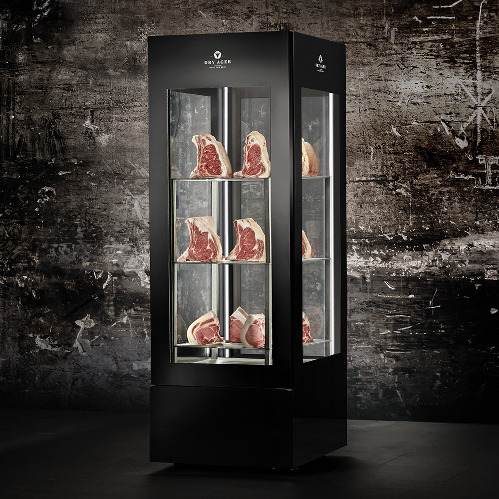 Vitrina za dozrijevanje Dry Ager Vision 360°. Premium prezentacija proizvoda. Konstrukcija s četiri staklene strane omogućuje neometan pogled na savršeno dozrelu hranu iz svakog kuta.